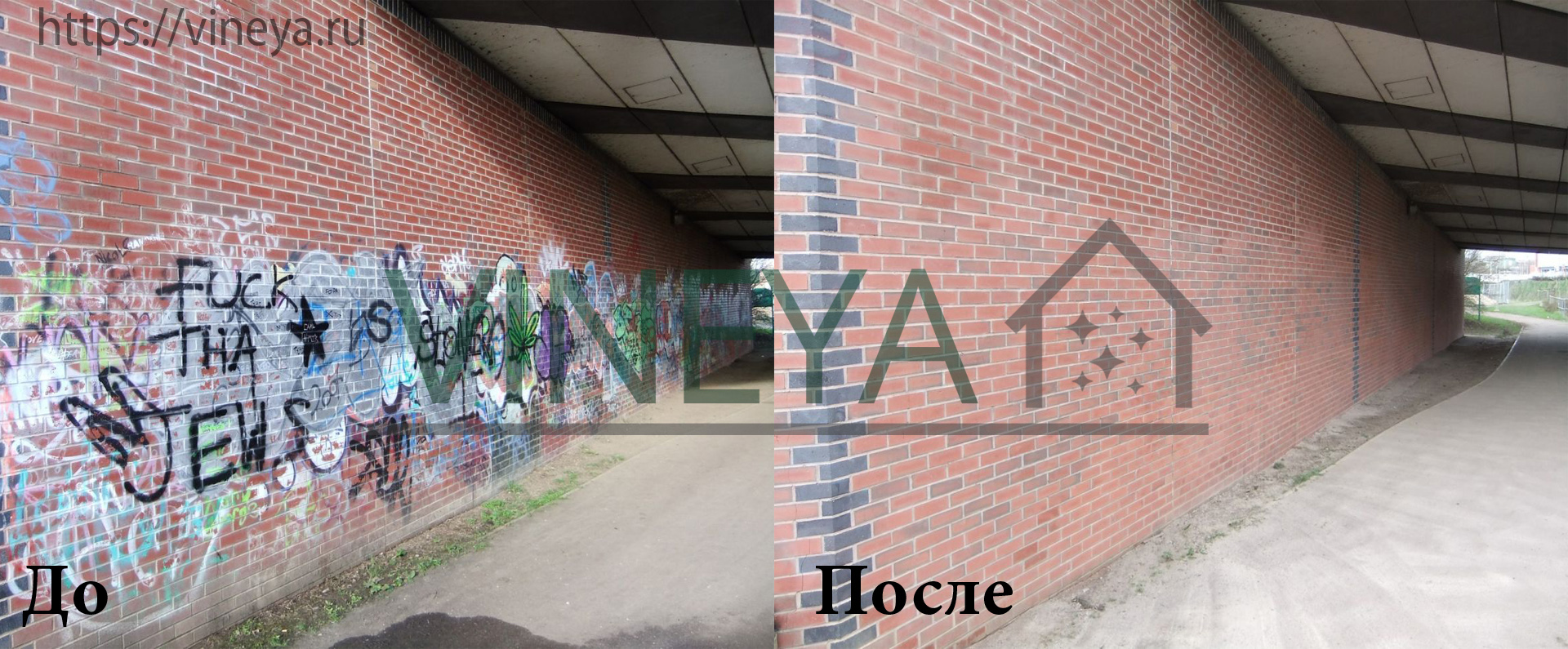 АлександрСтолкнулся с такой проблемой. Выполняли работу по ремонту переходов, замену гранитных ступеней, облицовке стен. Заказы серьезные, так как на открытие бывает приезжает даже сам Мэр или его Замы. В общем как раз закончили мы один переход, все готово, инструмент и оборудование увезли и сторожа отпустили. За два дня до открытия кто-то ночью в переходе баллончиками с аэрозольной краской устроил художественную мастерскую. Чем мы только не пробовали это отмыть, но толком ничего не получилось. Гранит, которым облицован переход, своим методом очистки чуть не испортили, а оставалось до открытия 2 дня, перерыли весь интернет и случайно нашли компанию «Винея», которая приехала и все у нас на глазах устранила и нанесла защиту на гранит от подобных случаев. Мы провели эксперимент, и краска теперь стирается обычным мыльным раствором. Мы их носили на руках, но что за чудо у этих ребят они так и не рассказали. Спасибо за эффективную работу! Выручили!