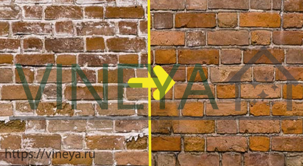 Смыть белый соляной налёт с кирпича, камня обычной водой не получится, даже наоборот — этот метод очистки только усугубит ситуацию, так как вода впитается в пористую поверхность и через некоторое время на стене или полу появится новый налёт.